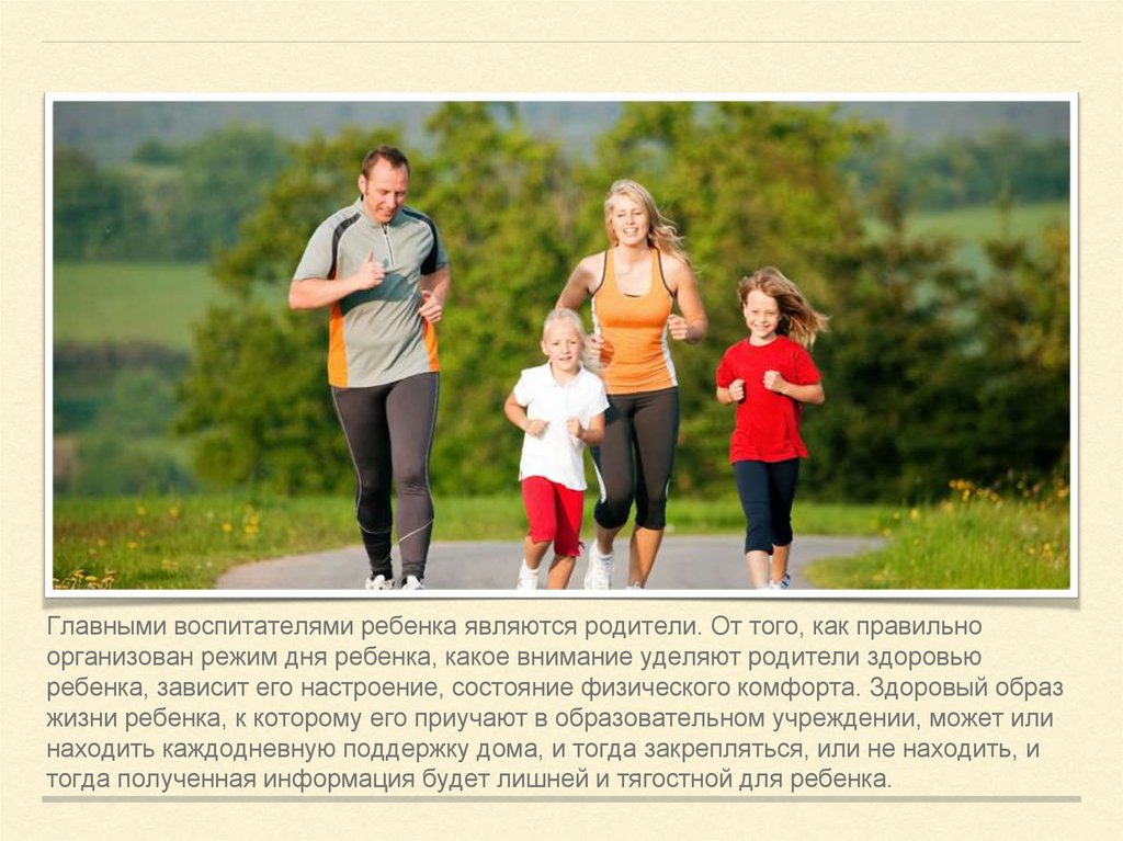 Главными воспитателями ребенка являются родители. От того, как правильноорганизован режим дня ребенка, какое внимание уделяют родители здоровью