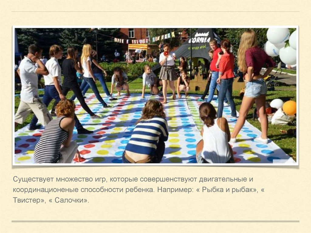 Существует множество игр, которые совершенствуют двигательные икоординационеные способности ребенка. Например: « Рыбка и рыбак», «