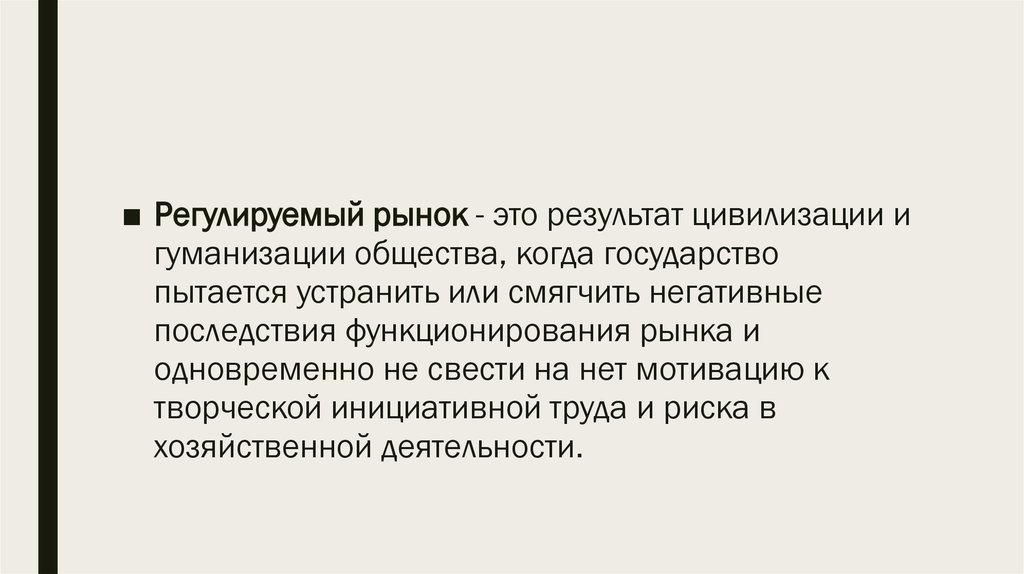 ■ Регулируемый рынок - это результат цивилизации игуманизации общества, когда государство