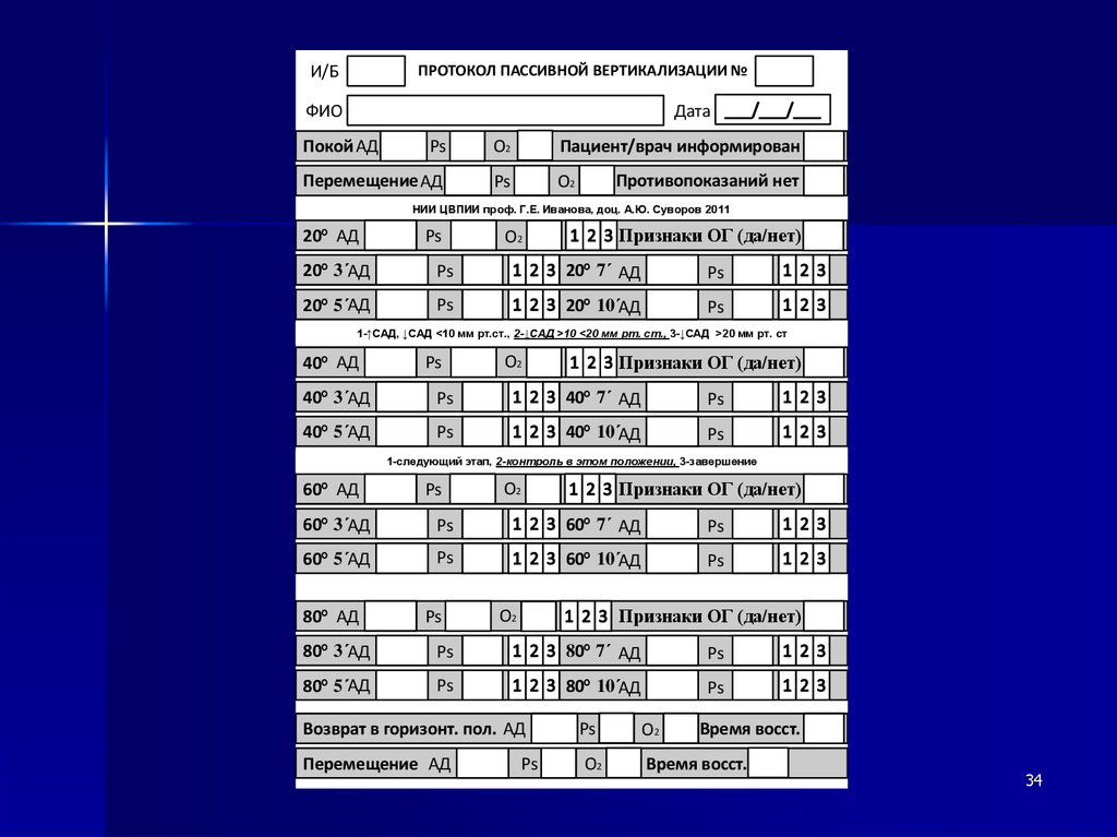 ПРОТОКОЛ ПАССИВНОЙ ВЕРТИКАЛИЗАЦИИ №И/Б