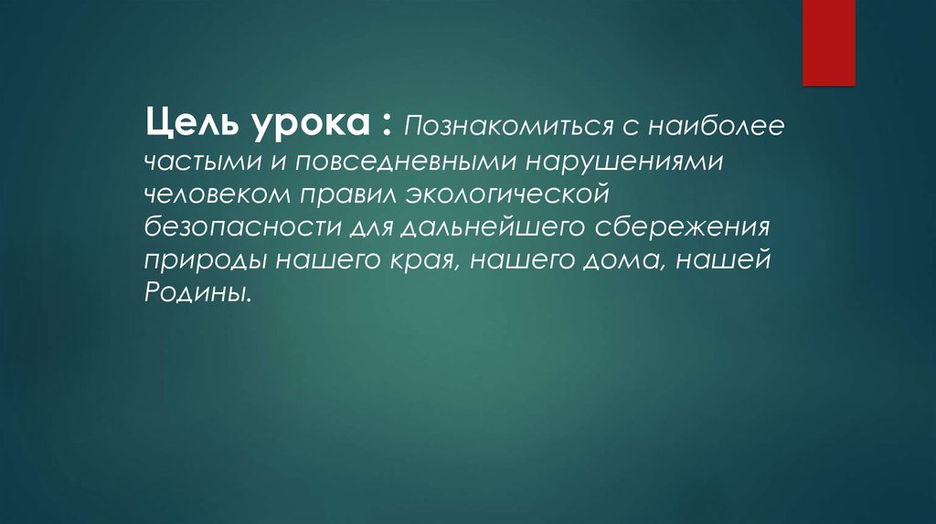 Цель урока : Познакомиться с наиболеечастыми и повседневными нарушениями