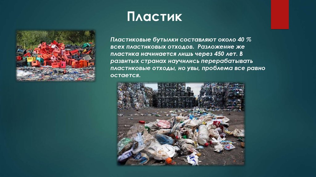 ПластикПластиковые бутылки составляют около 40 %