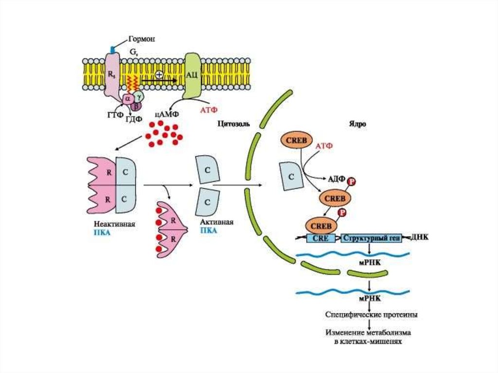 участии мембранных G-белков, например разные типы рецепторов адреналина,
