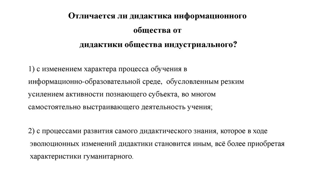 эволюционных изменений дидактики становится иным, всё более приобретая