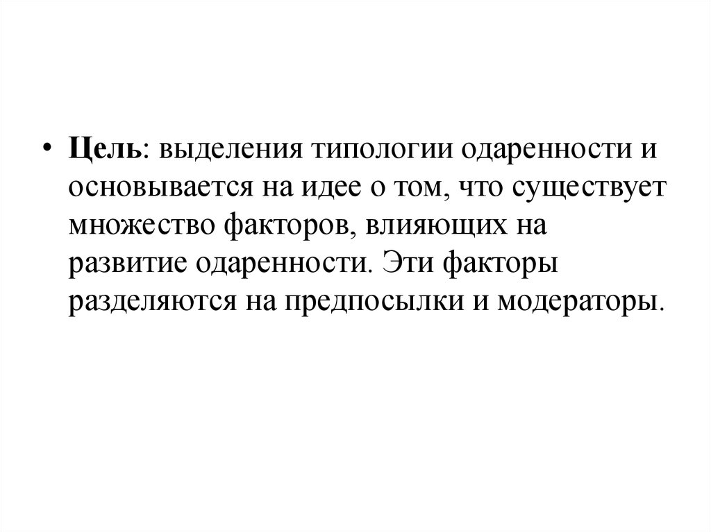 • Цель: выделения типологии одаренности иосновывается на идее о том, что существует