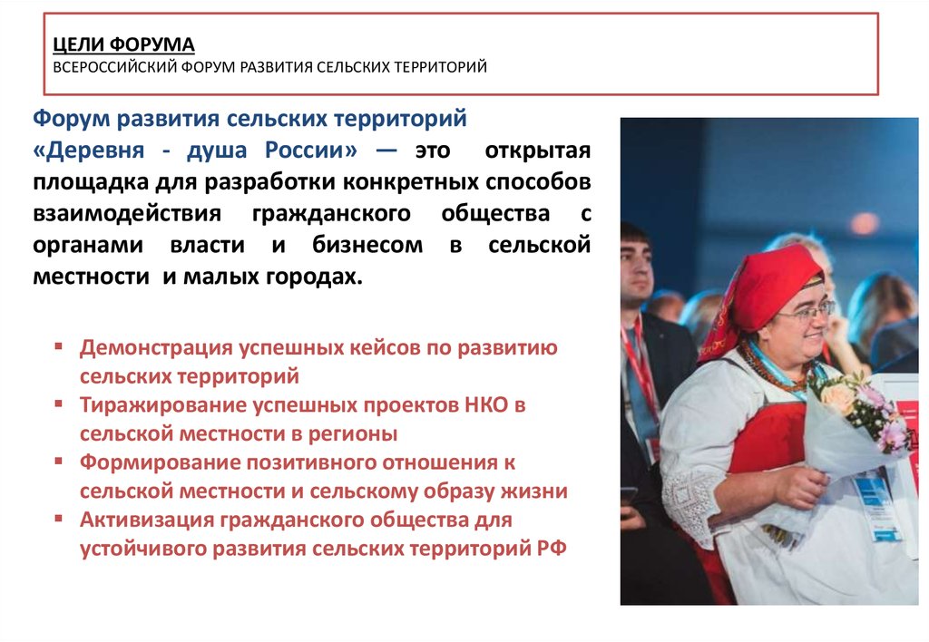 ЦЕЛИ ФОРУМАВСЕРОССИЙСКИЙ ФОРУМ РАЗВИТИЯ СЕЛЬСКИХ ТЕРРИТОРИЙ