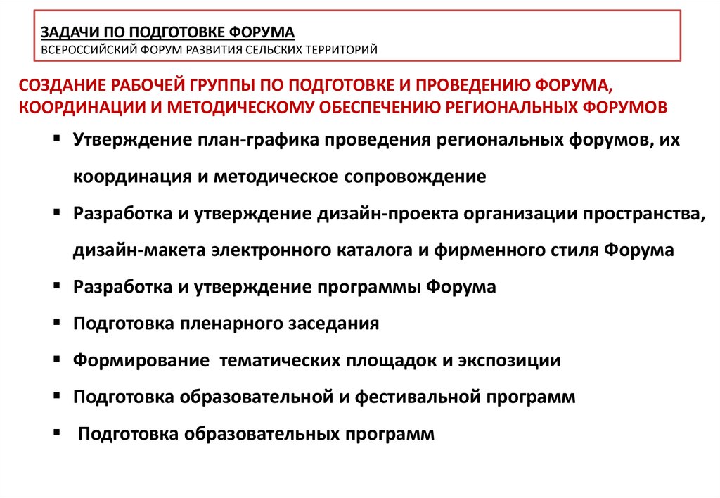 ЗАДАЧИ ПО ПОДГОТОВКЕ ФОРУМАВСЕРОССИЙСКИЙ ФОРУМ РАЗВИТИЯ СЕЛЬСКИХ ТЕРРИТОРИЙ