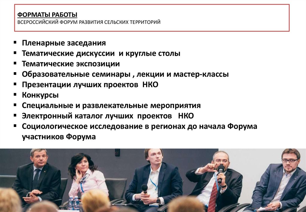 ФОРМАТЫ РАБОТЫВСЕРОССИЙСКИЙ ФОРУМ РАЗВИТИЯ СЕЛЬСКИХ ТЕРРИТОРИЙ