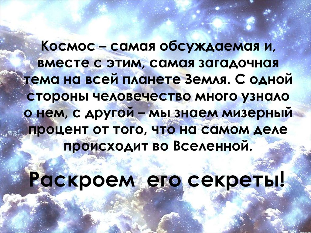 Космос – самая обсуждаемая и,вместе с этим, самая загадочная