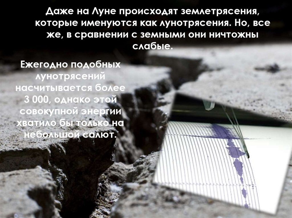 Даже на Луне происходят землетрясения,которые именуются как лунотрясения. Но, все