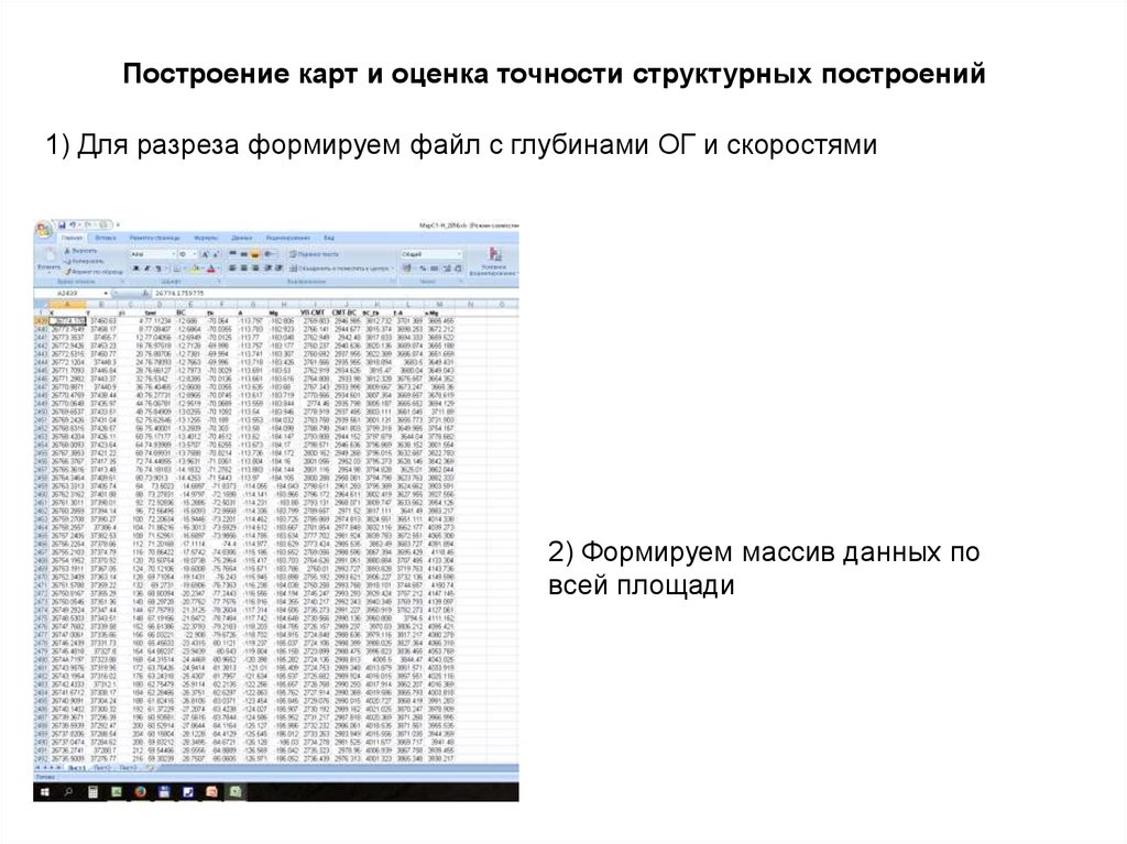 Построение карт и оценка точности структурных построений1) Для разреза формируем файл с глубинами ОГ и скоростями