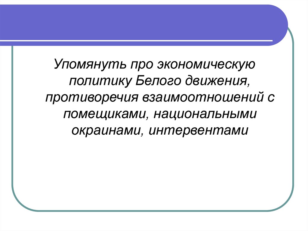 Упомянуть про экономическуюполитику Белого движения,