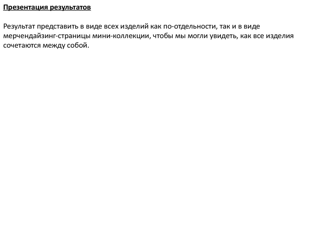 Презентация результатовРезультат представить в виде всех изделий как по-отдельности, так и в виде