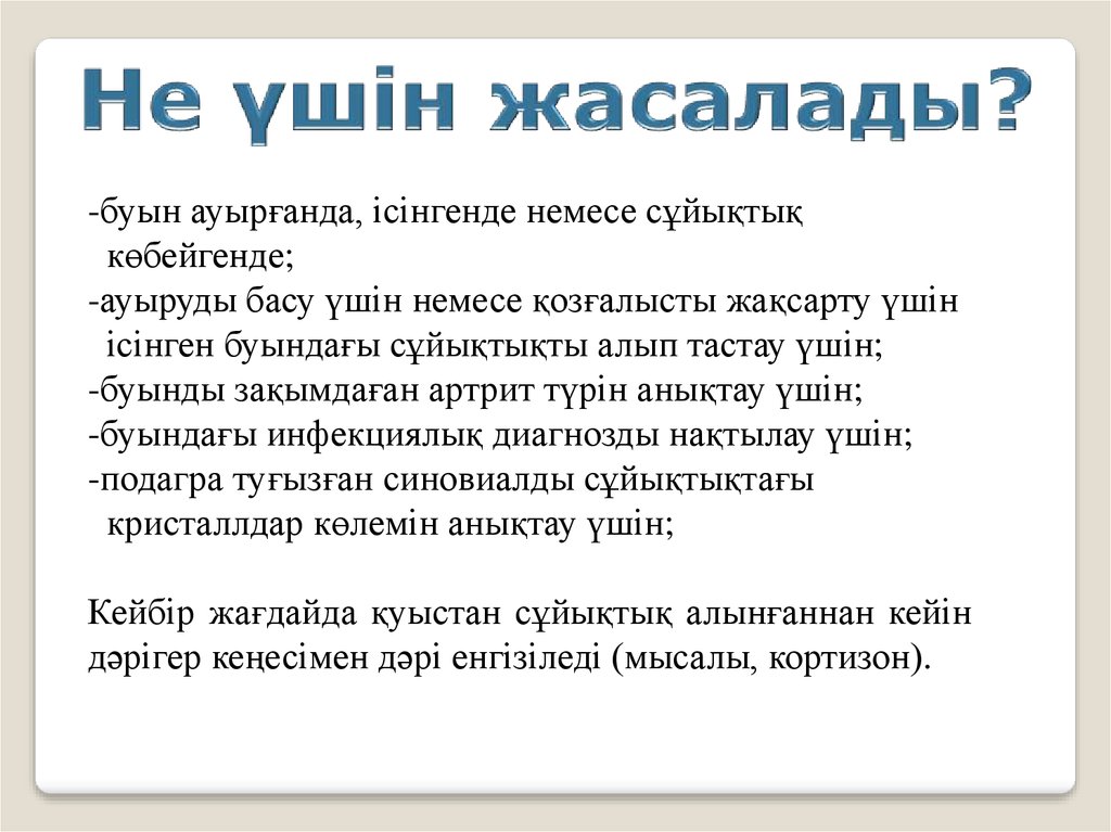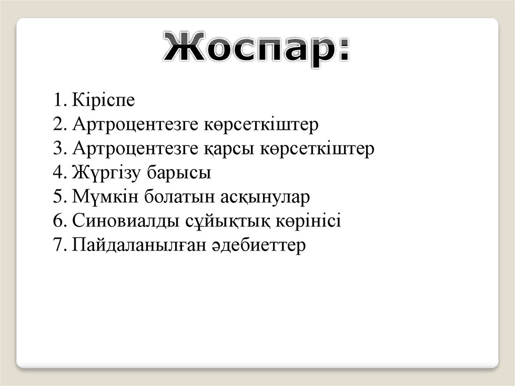 1. Кіріспе2. Артроцентезге көрсеткіштер