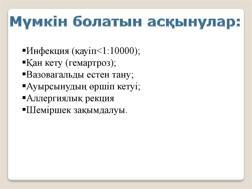 Инфекция (қауіп<1:10000);Қан кету (гемартроз);