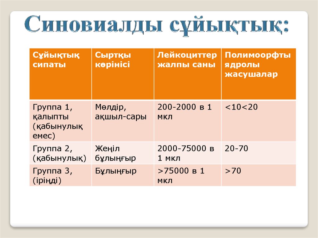 Синовиальды сұйықтықҚалыпты СС