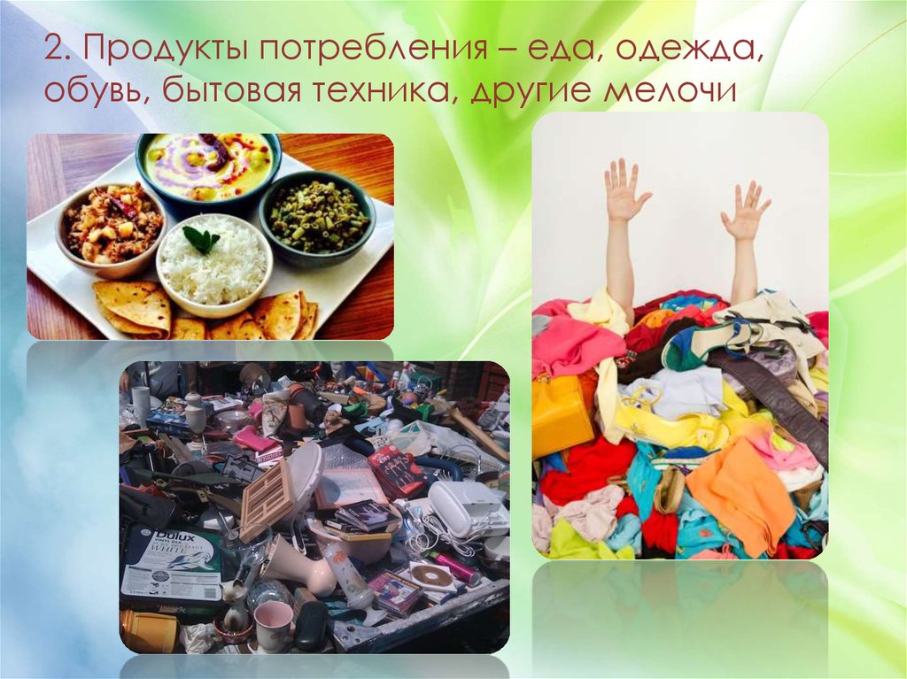 2. Продукты потребления – еда, одежда,обувь, бытовая техника, другие мелочи