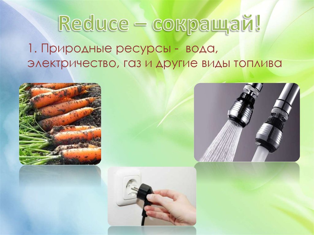 1. Природные ресурсы - вода,электричество, газ и другие виды топлива