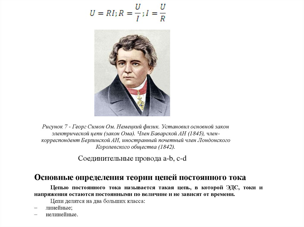 Рисунок 7 - Георг Симон Ом. Немецкий физик. Установил основной законэлектрической цепи (закон Ома). Член Баварской АН (1845), членкорреспондент Берлинской АН, иностранный почетный член Лондонского
