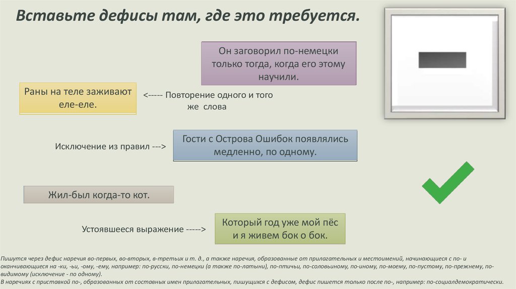 Вставьте дефисы там, где это требуется.Он