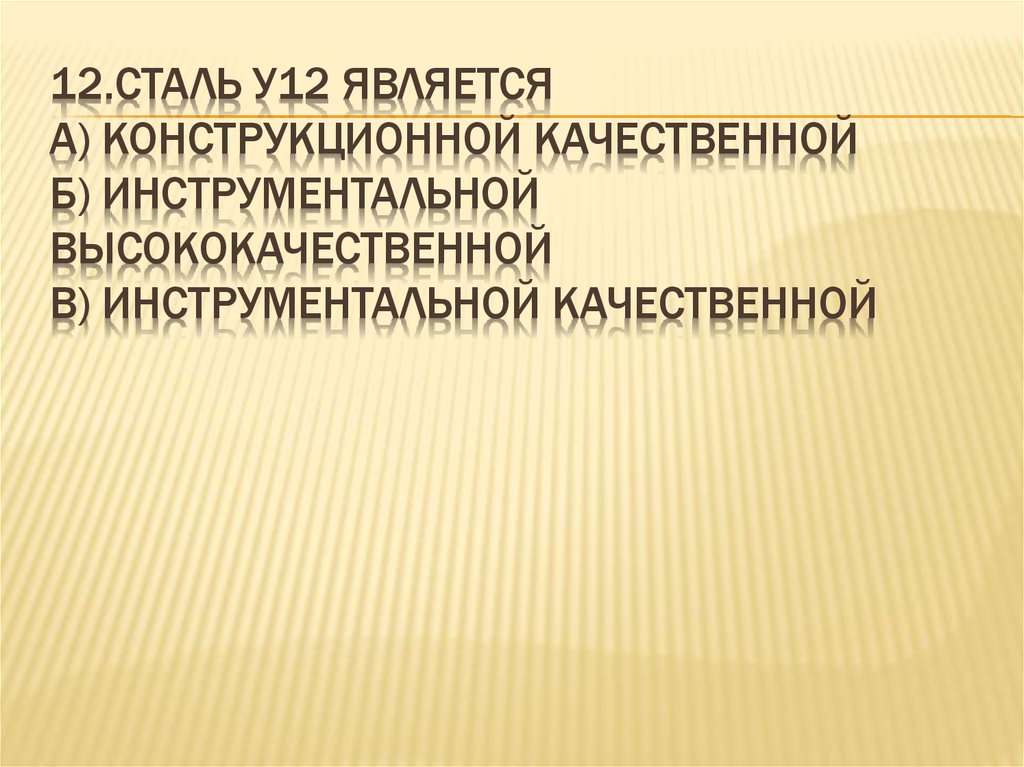 12.СТАЛЬ У12 ЯВЛЯЕТСЯА) КОНСТРУКЦИОННОЙ КАЧЕСТВЕННОЙ