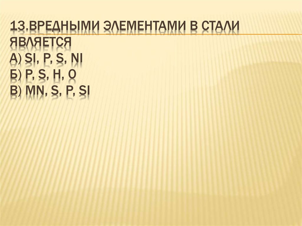 13.ВРЕДНЫМИ ЭЛЕМЕНТАМИ В СТАЛИЯВЛЯЕТСЯ
