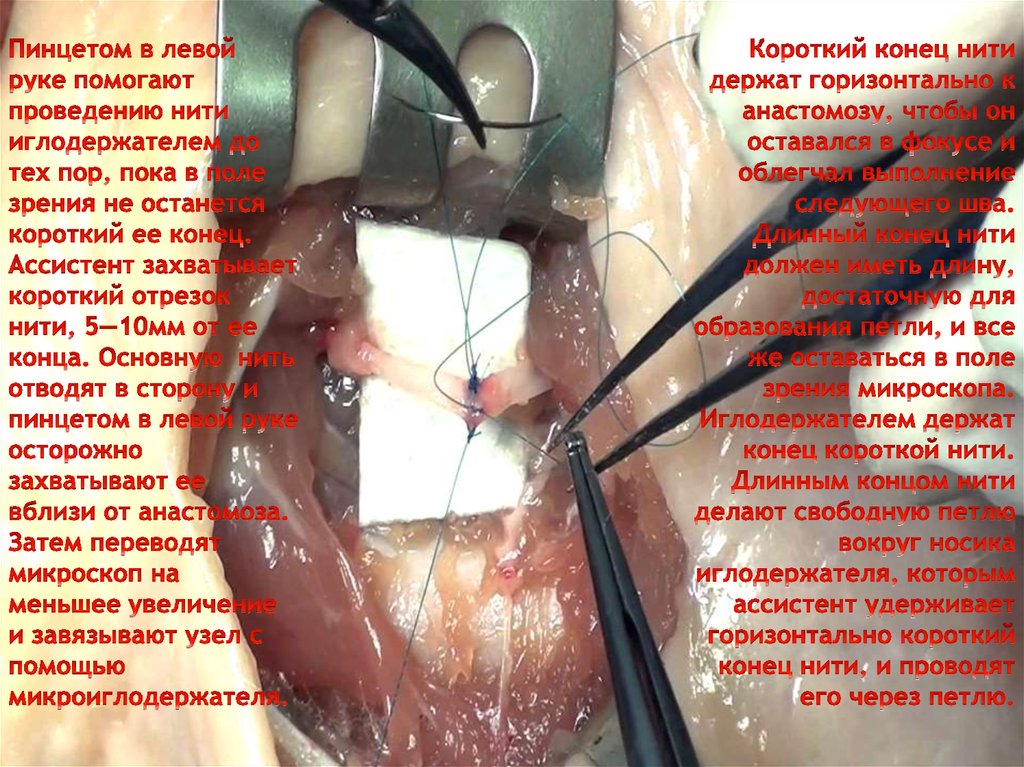 •Иглодержатель смещают вдоль иглы к ее хвосту, чтобы при