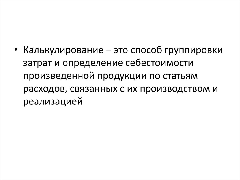 • Калькулирование – это способ группировкизатрат и определение себестоимости
