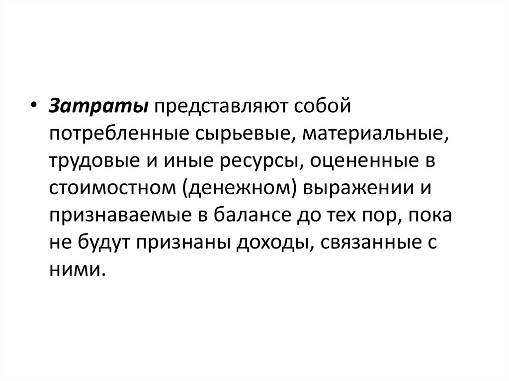 • Затраты представляют собойпотребленные сырьевые, материальные,