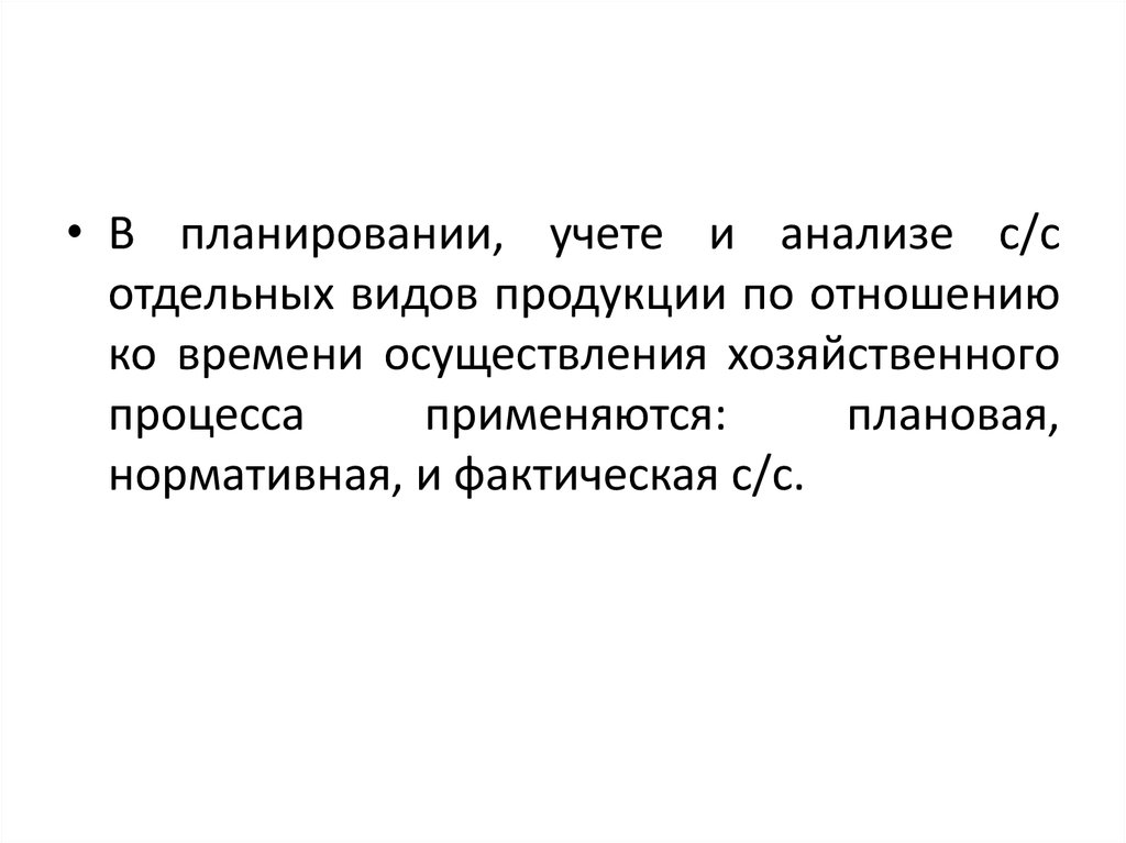 • В планировании, учете и анализе с/сотдельных видов продукции по отношению