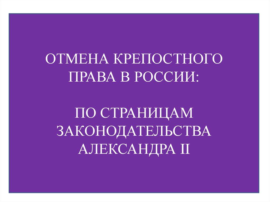 ОТМЕНА КРЕПОСТНОГОПРАВА В РОССИИ: