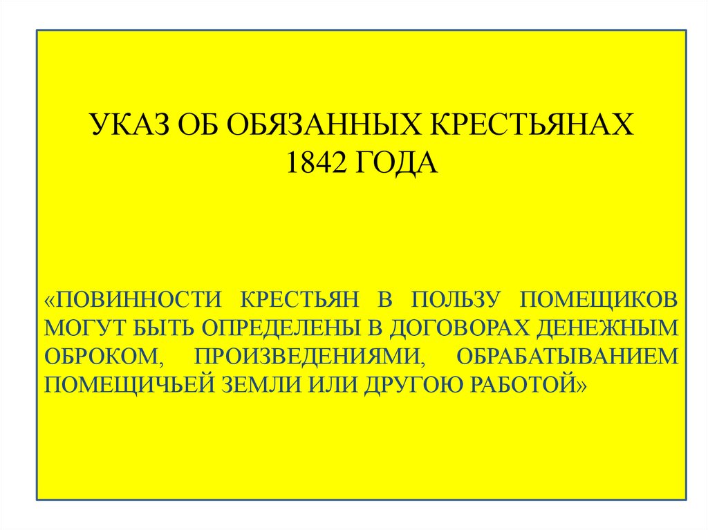 УКАЗ ОБ ОБЯЗАННЫХ КРЕСТЬЯНАХ1842 ГОДА