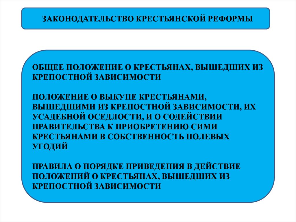 ЗАКОНОДАТЕЛЬСТВО КРЕСТЬЯНСКОЙ РЕФОРМЫОБЩЕЕ ПОЛОЖЕНИЕ О КРЕСТЬЯНАХ, ВЫШЕДШИХ ИЗ