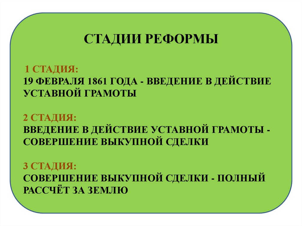 СТАДИИ РЕФОРМЫ1 СТАДИЯ: