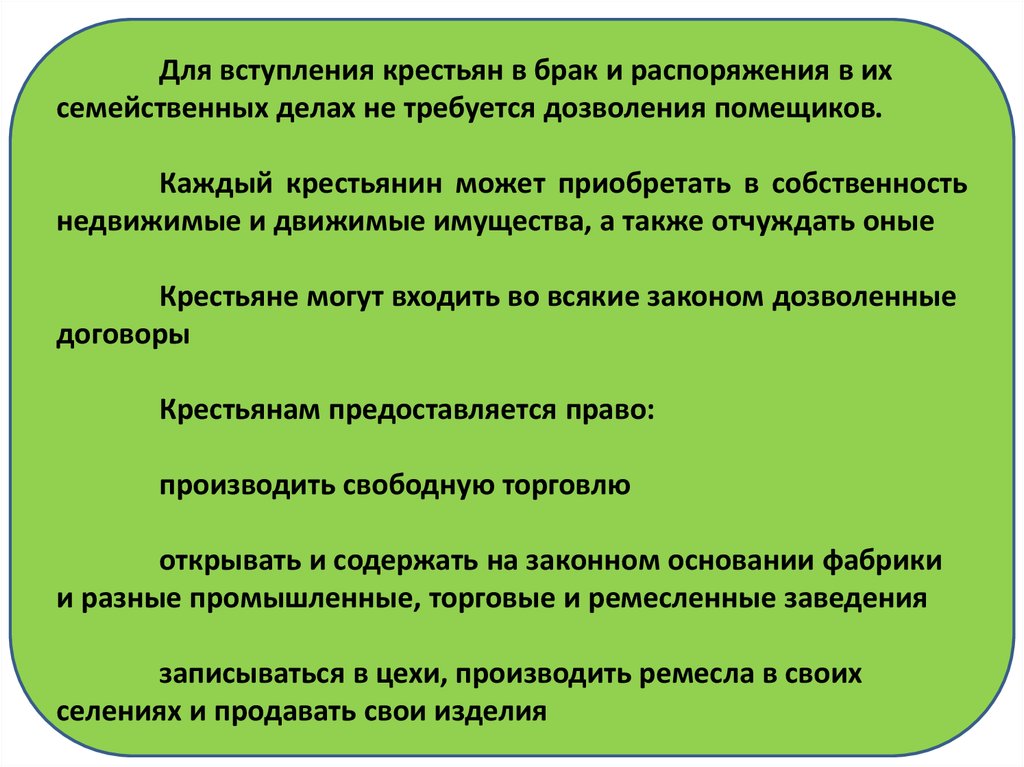 Для вступления крестьян в брак и распоряжения в ихсемейственных делах не требуется дозволения помещиков.