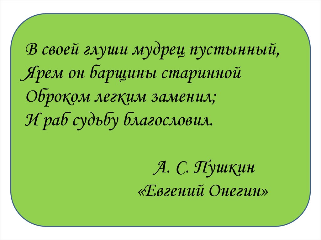 В своей глуши мудрец пустынный,Ярем он барщины старинной