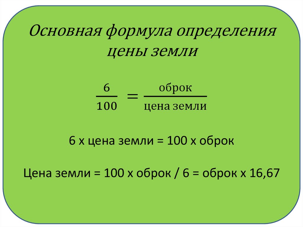 Цена земли = 100 х оброк / 6 = оброк х 16,67