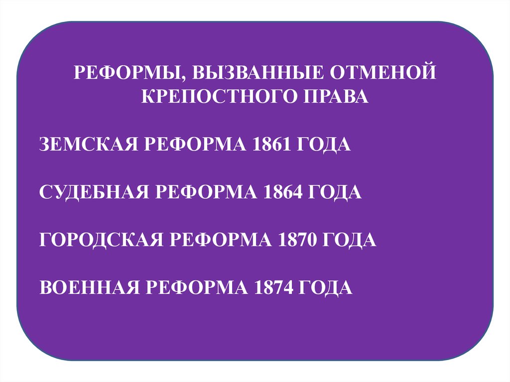 РЕФОРМЫ, ВЫЗВАННЫЕ ОТМЕНОЙКРЕПОСТНОГО ПРАВА