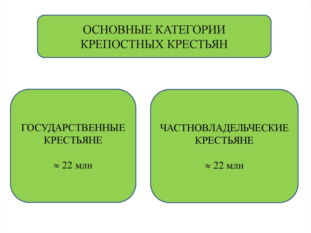 ОСНОВНЫЕ КАТЕГОРИИКРЕПОСТНЫХ КРЕСТЬЯН