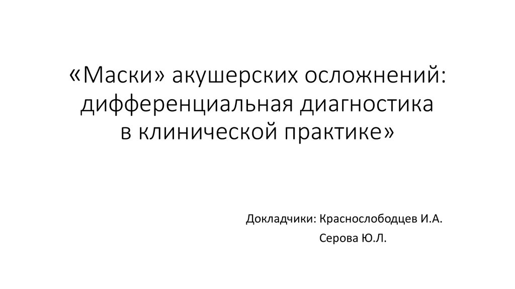 «Маски» акушерских осложнений:дифференциальная диагностика