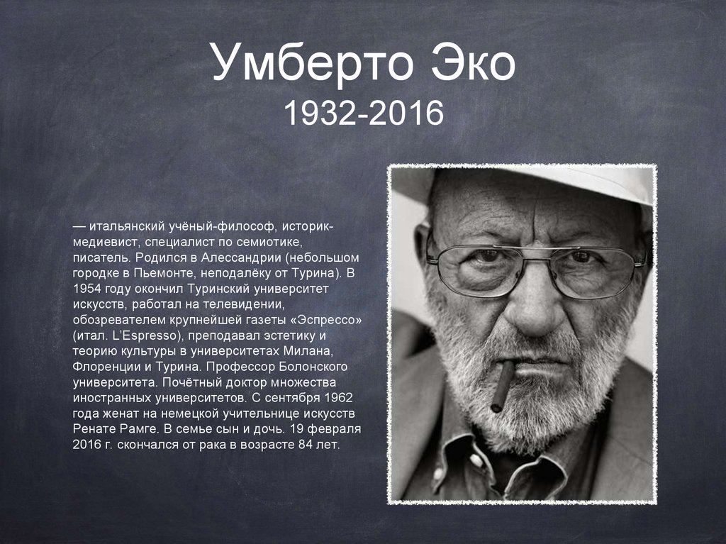 — итальянский учёный-философ, историкмедиевист, специалист по семиотике,