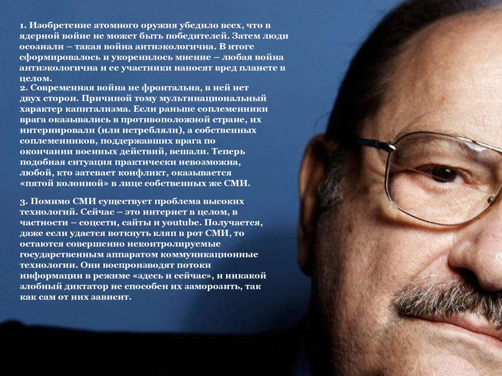 1. Изобретение атомного оружия убедило всех, что вядерной войне не может быть победителей. Затем люди