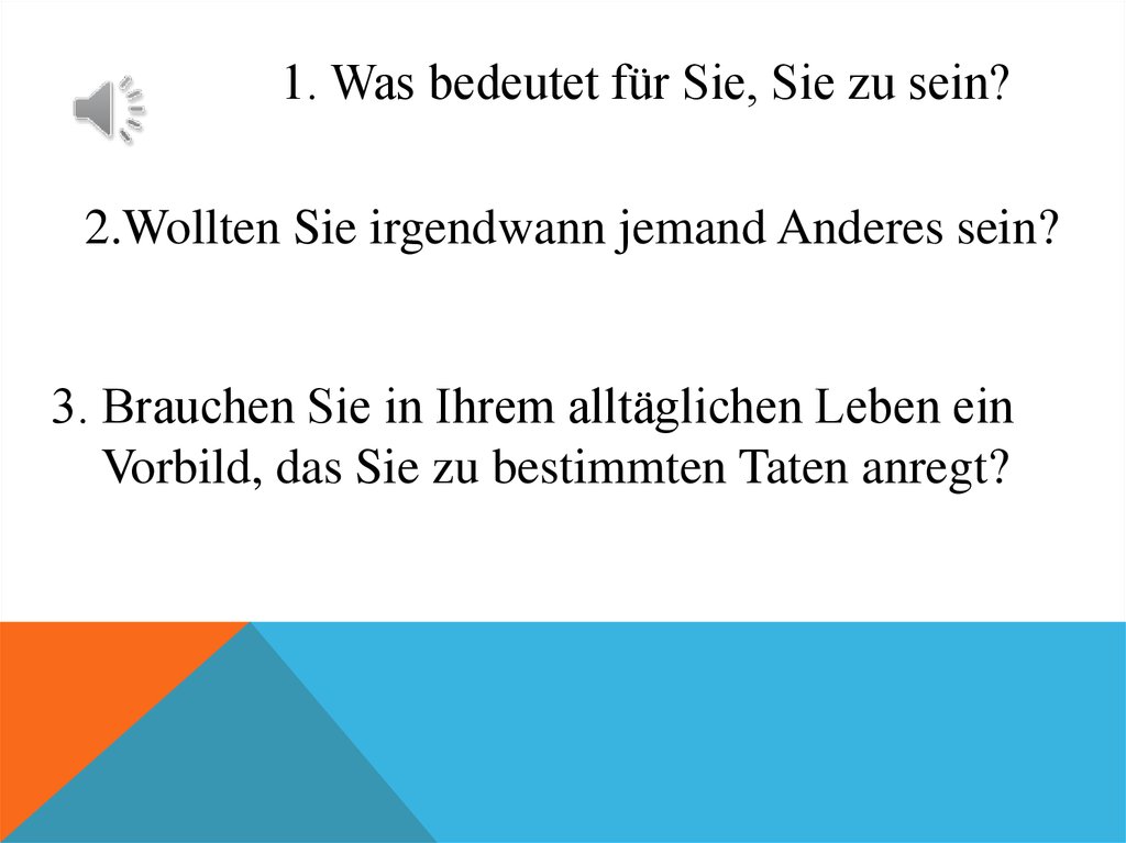 1. Was bedeutet für Sie, Sie zu sein?2.Wollten Sie irgendwann jemand Anderes sein?