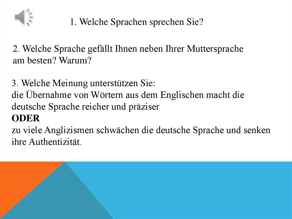 1. Welche Sprachen sprechen Sie?2. Welche Sprache gefällt Ihnen neben Ihrer Muttersprache