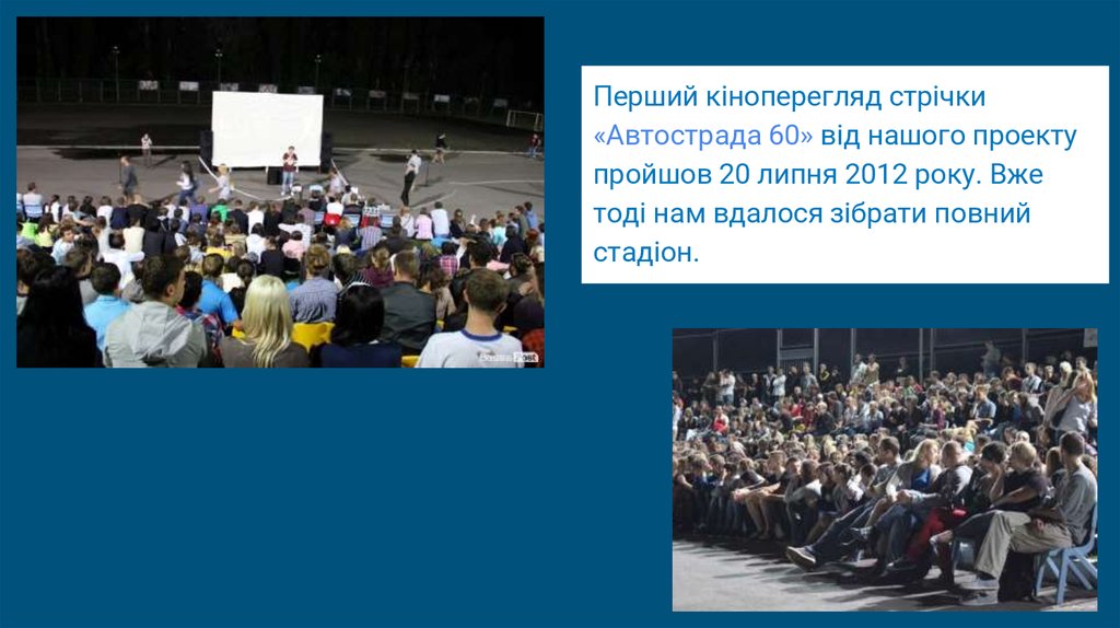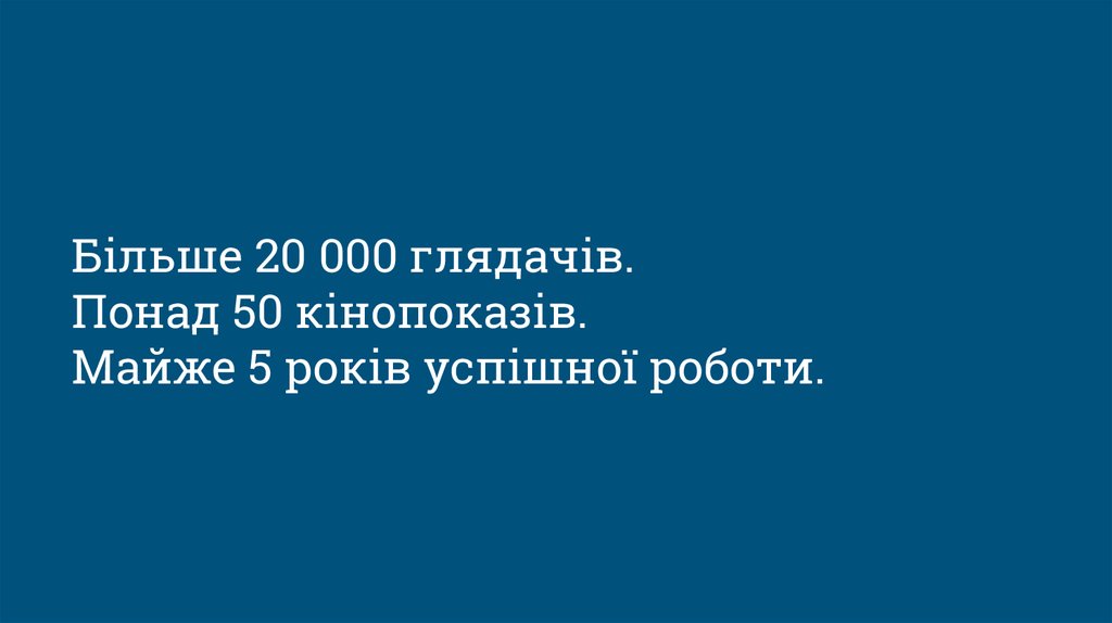 Більше 20 000 глядачів.Понад 50 кінопоказів.