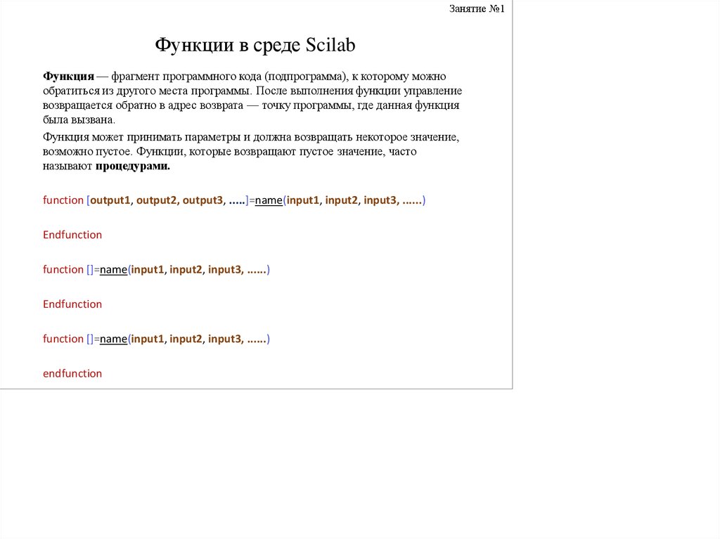 Занятие №1Функции в среде Scilab