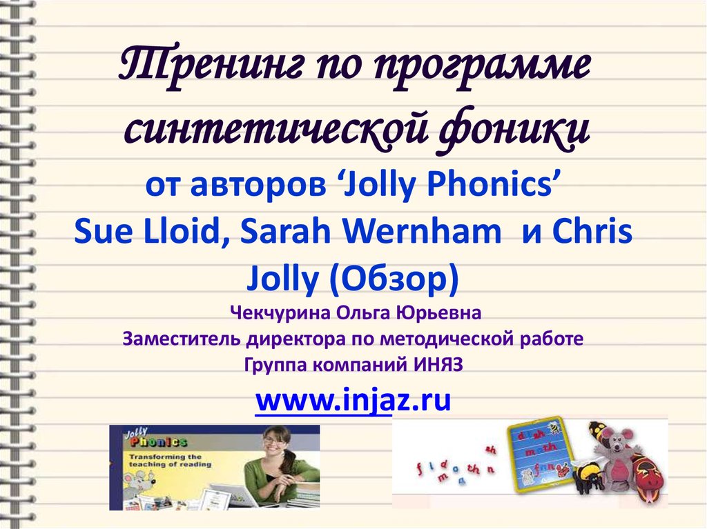1. Тренинг по программе синтетической фоники от авторов ‘Jolly Phonics’ Sue Lloid, Sarah Wernham и Chris Jolly (Обзор)