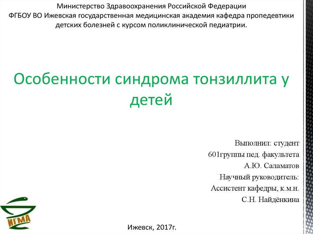 На основании изучения клинико-лабораторныхособенностей синдрома тонзиллита у детей на