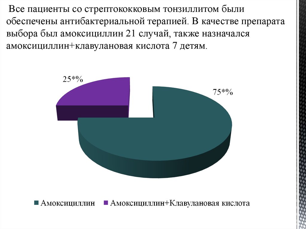 Все пациенты со стрептококковым тонзиллитом былиобеспечены антибактериальной терапией. В качестве препарата