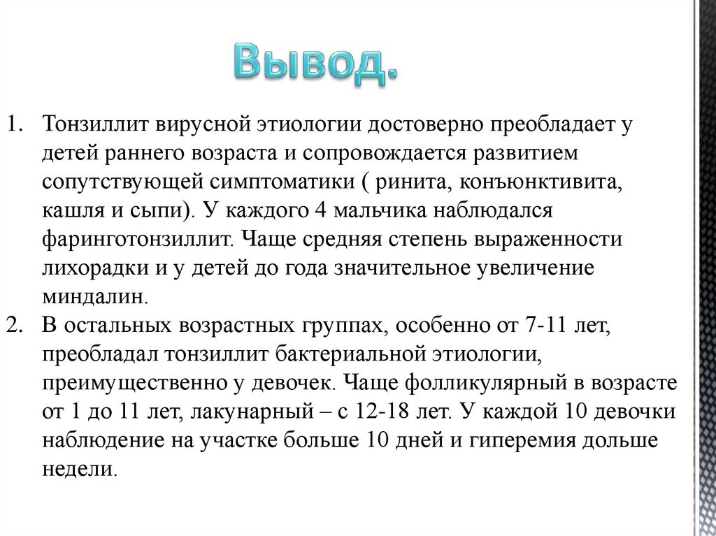 1. Тонзиллит вирусной этиологии достоверно преобладает удетей раннего возраста и сопровождается развитием
